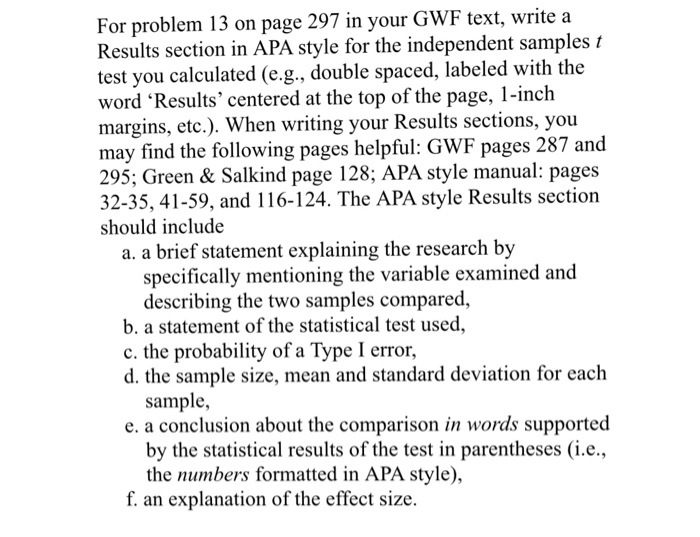 Do not include the raw data in the results section. Report data in order to sufficiently justify your conclusions. 2) download & print apa bib. Each analysis you run should be related Write in block style (the first line is not indented) and use 120 words or less. Apr 15, 2020 · how to write an apa results section the results should justify your claims. The abstract is a one paragraph summary of the report. If you are creating a qualitative research paper, you must provide readers with the outcomes of your work in this document. Remember, you are summarizing the results,. Describe the participants'/subjects' pertinent characteristics (number, type, age, sex, and for Dec 21, 2020 · presenting numbers effectively. How do you write an apa research paper? Do not interpret the results